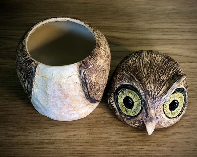 This handmade owl jar is perfect gift for owl lovers and it can be used as decoration or as a functional jar. Not to mention that you can also use it as a secret hiding spot for small things. 😂